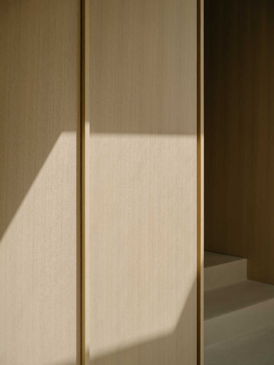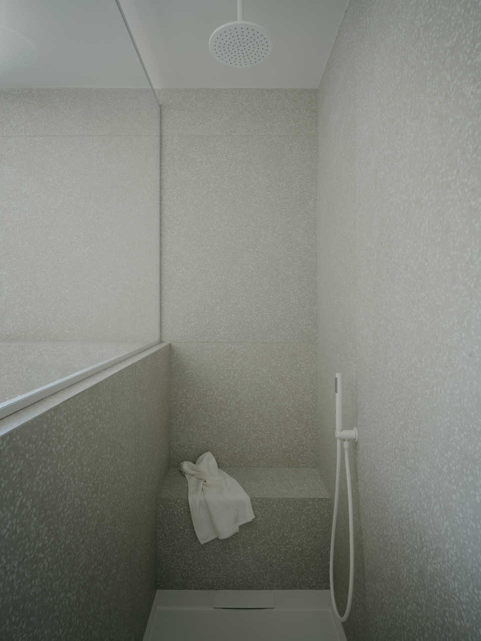 The bathroom continues the material language established elsewhere in the project, with a focus on simplicity, texture and restraint. Muted finishes, bespoke vanity joinery and integrated detailing create a serene, practical space. Light is used carefully to enhance surfaces and reinforce a sense of calm throughout.